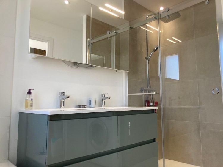 • Salle de bain avec double vasque, douche à l’italienne et baignoire