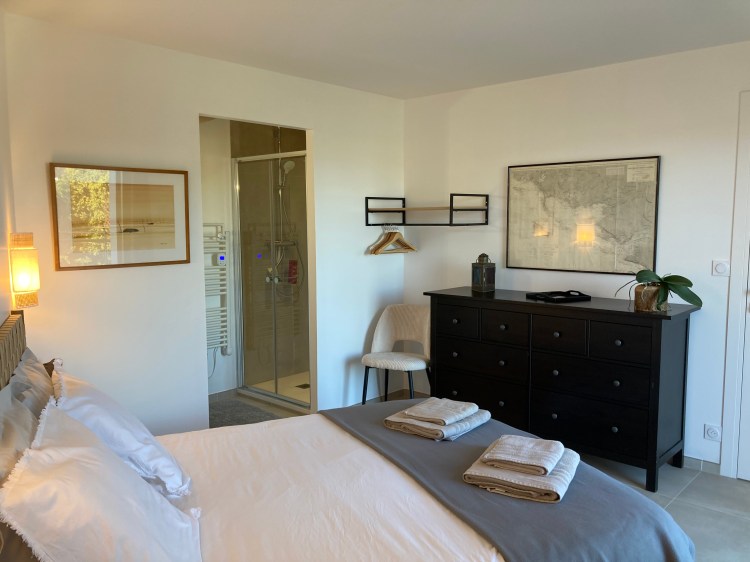 • 3 chambres spacieuses avec lits doubles (2 en 160 cm et 1 en 140 cm), dont deux avec accès direct à la terrasse